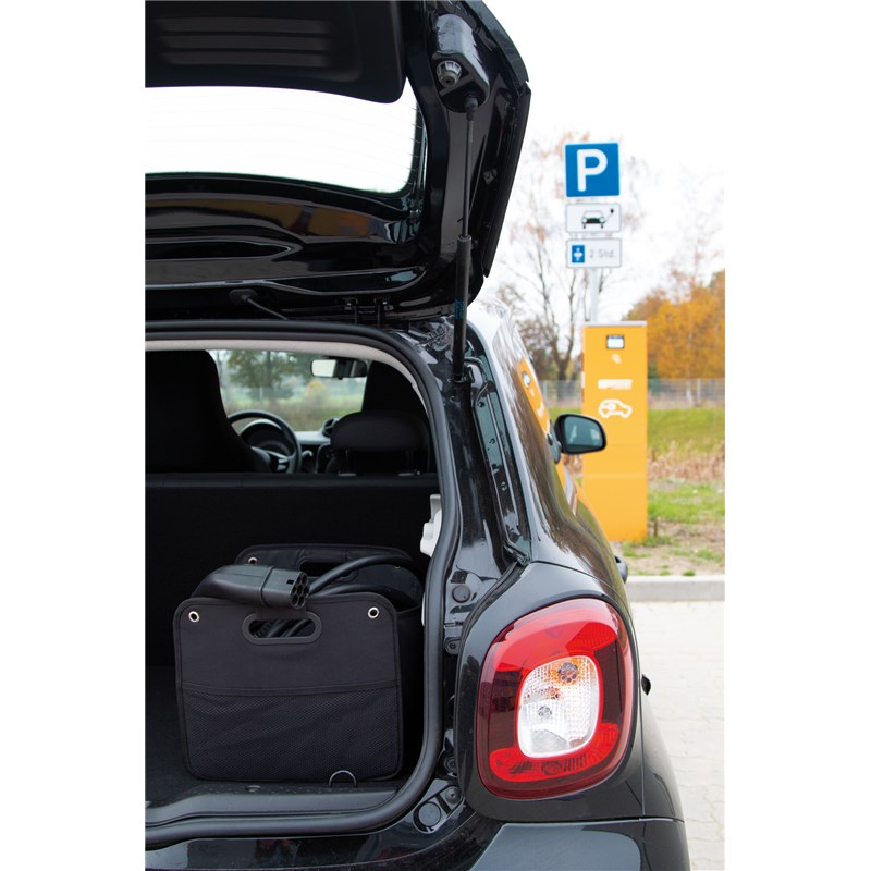 Taška do zavazadlového prostoru do auta, skládací: s podlahovými rohožemi, boční kapsou ze síťoviny, 2 integrovanými uchy pro přenášení, se suchým zipem na dně pro bezpečné uchycení v zavazadlovém prostoru a 4 kovovými oky pro ukotvení, ideální úložný prostor pro nabíjecí kabel pro elektromobily - díky elastickému pásu lze složit a ušetřit místo, když se nepoužívá.