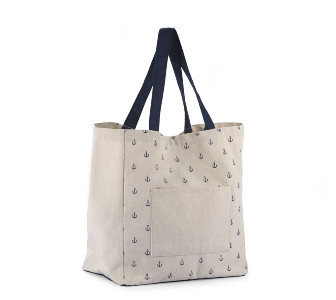 Prostorná jednokomorová taška MARINE se vám bude hodit na dovolené na pláži i ve městě. Má atraktivní potisk s motivem kotvy. Je vyrobena z odolné bavlny o gramáži 220 g/m2. Taška má vnější boční kapsu a dlouhá ucha pro zavěšení na rameno.