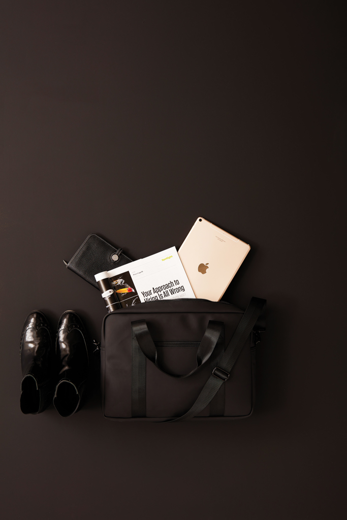 Taška na notebook s moderním a čistým designem. Spojení funkce a formy: kromě běžné kapsy na notebook má tato taška také prostor pro pera a tužky, dokumenty a další věci. Taška je vyrobena z materiálu odpuzujícího vodu, má ramenní popruh i ucha na nošení. Na zadní straně je vybaven popruhem pro umístění na madlo kufru.
