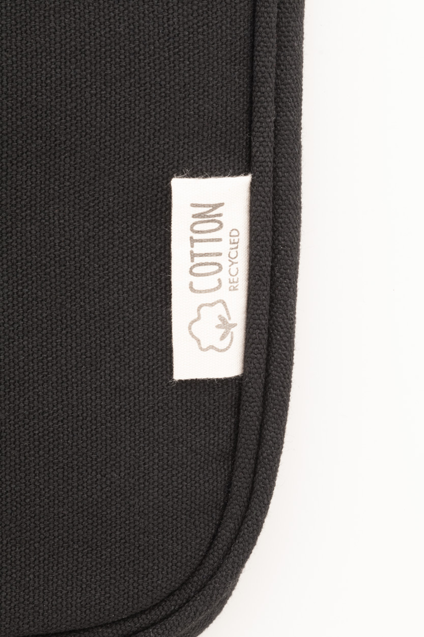 Plně polstrovaná taška na notebook z recyklovaného plátna s přihrádkou na zip a přední kapsou. Vhodné pro notebooky do 15". 70% recyklované bavlny a 30% RPET polyesteru. S výrazným štítkem z recyklované bavlny.