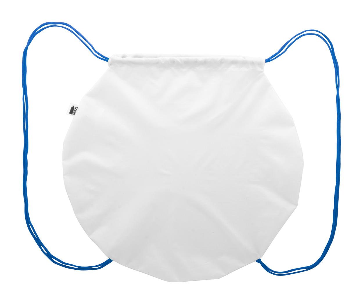 Na zakázku vyrobená taška se stahovací šňůrkou ve tvaru koule s barevnými šňůrkami, polyester 190T RPET. S celoplošně tištěnou sublimační grafikou a výrazným štítkem RPET. MOQ: 50 ks.
