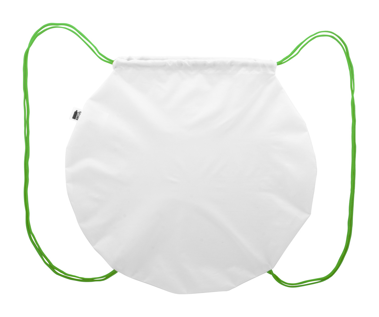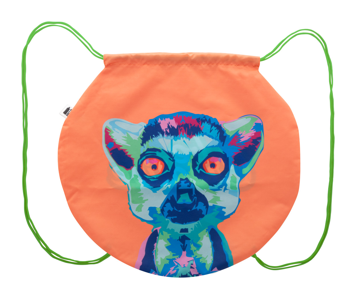 Na zakázku vyrobená taška se stahovací šňůrkou ve tvaru koule s barevnými šňůrkami, polyester 190T RPET. S celoplošně tištěnou sublimační grafikou a výrazným štítkem RPET. MOQ: 50 ks.