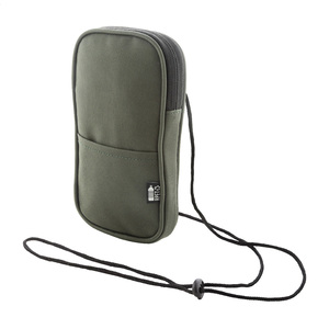 Voděodolná RPET crossbody taška na mobilní telefon s hlavní přihrádkou na zip, přední kapsou a nastavitelnou šňůrkou. Polyester RPET 600D potažený PU, s výrazným štítkem RPET.