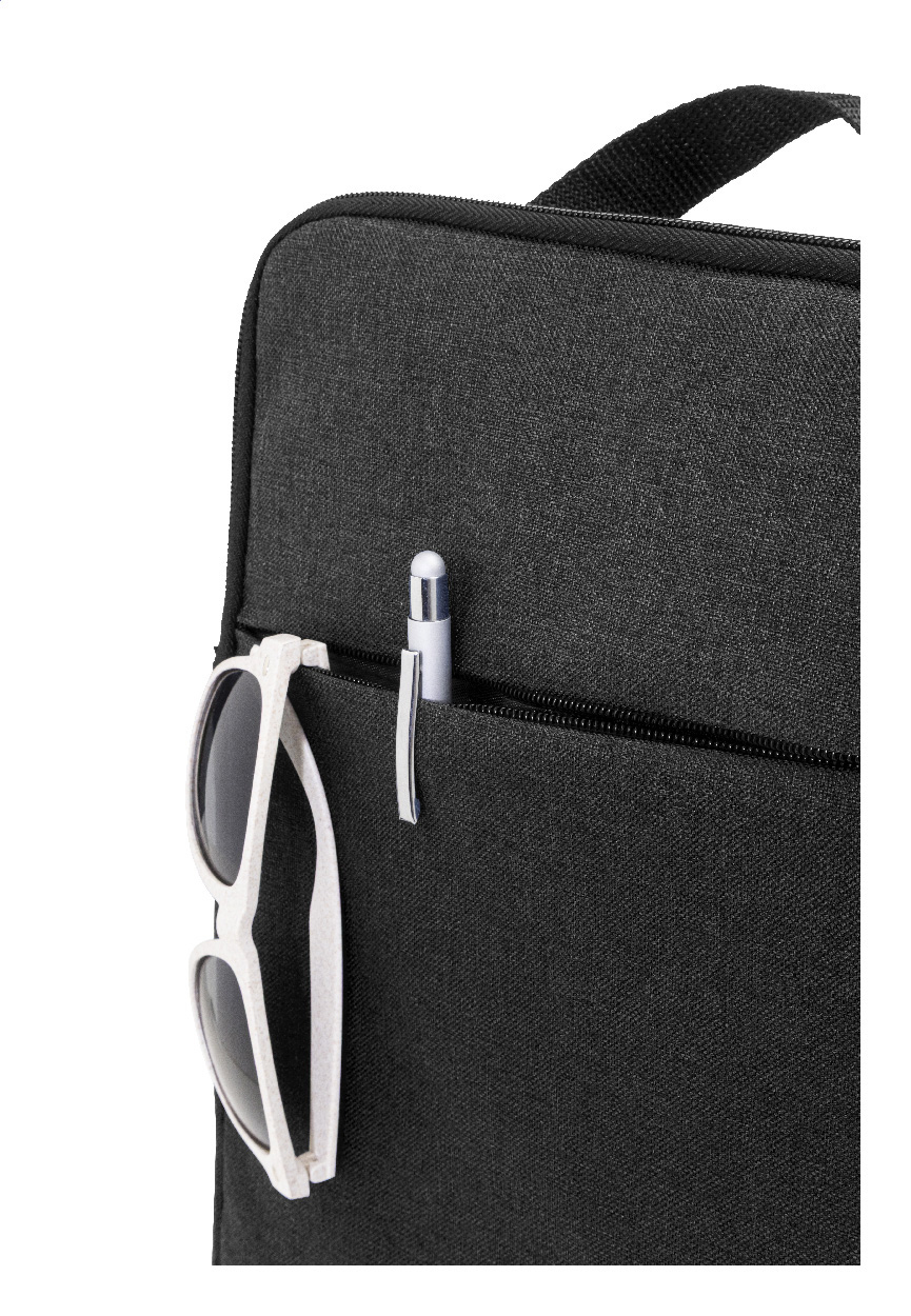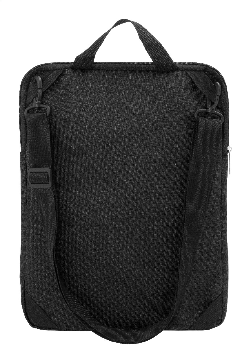 Polstrovaná taška přes rameno z polyesteru 600D RPET na dokumenty nebo notebook s přihrádkou na zip a přední kapsou na zip. Vhodná pro notebooky do velikosti 15". S nastavitelným ramenním popruhem vybaveným vertikální a horizontální polohou. S výrazným štítkem RPET.