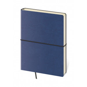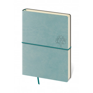 Moderní zápisník v měkké ohebné vazbě s kulatou příčnou gumičkou přes hřbet představuje nejnovější způsob zpracování. Zápisník je příjemný do ruky díky matné kožence a lehký díky měkkým deskám. Materiál desek se hodí na sleporažbu, která na kožence vynikne.