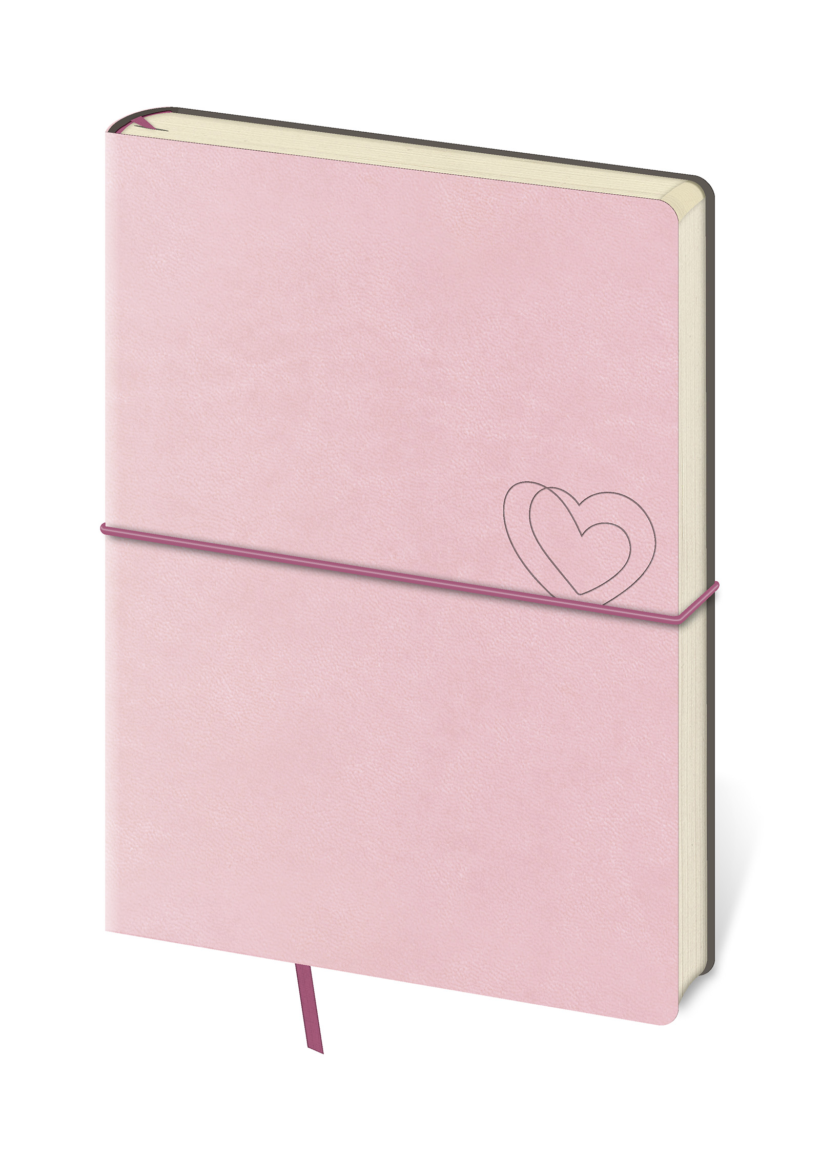 Moderní zápisník v měkké ohebné vazbě s kulatou příčnou gumičkou přes hřbet představuje nejnovější způsob zpracování. Zápisník je příjemný do ruky díky matné kožence a lehký díky měkkým deskám. Materiál desek se hodí na sleporažbu, která na kožence vynikne.