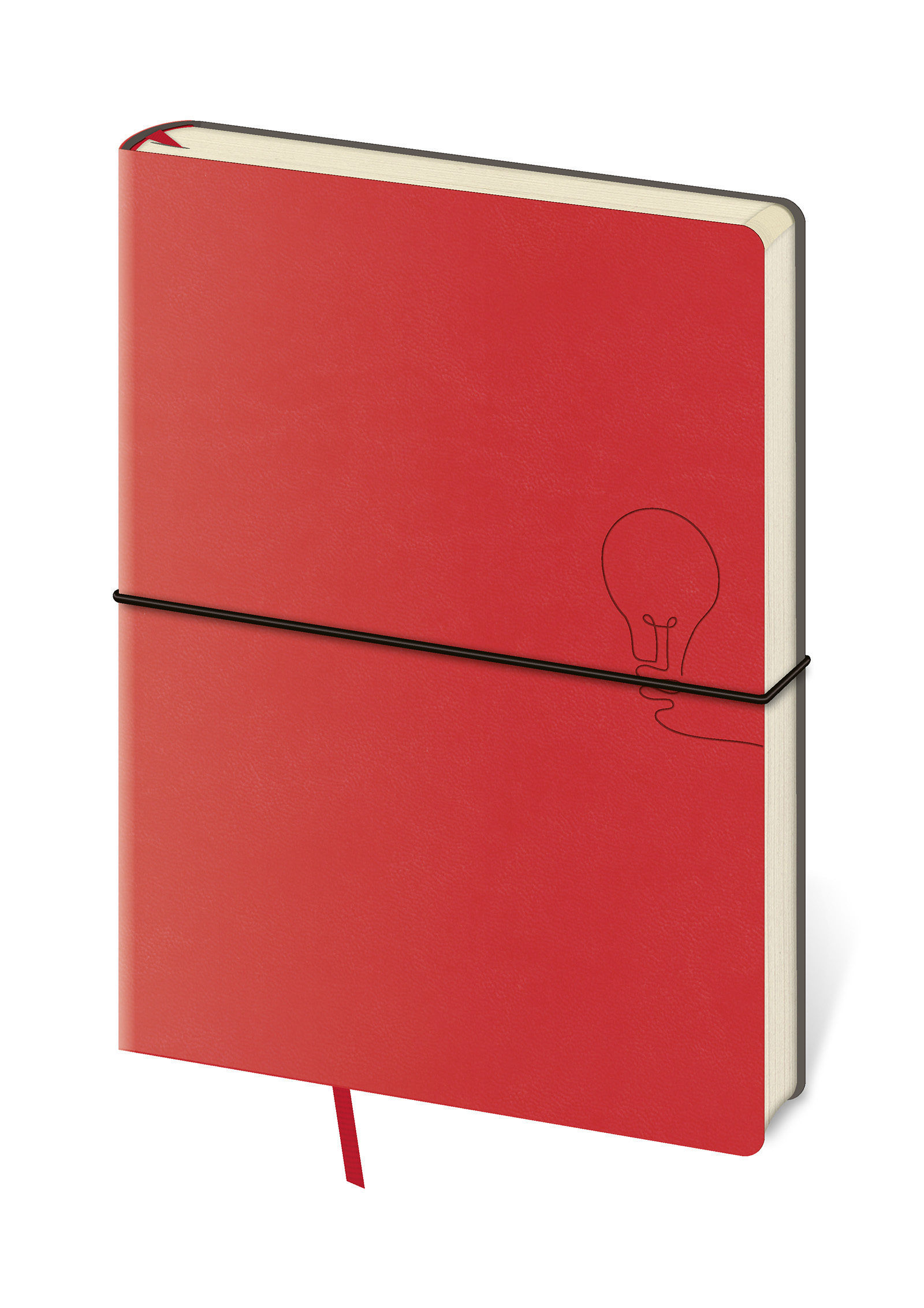 Moderní zápisník v měkké ohebné vazbě s kulatou příčnou gumičkou přes hřbet představuje nejnovější způsob zpracování. Zápisník je příjemný do ruky díky matné kožence a lehký díky měkkým deskám. Materiál desek se hodí na sleporažbu, která na kožence vynikne.