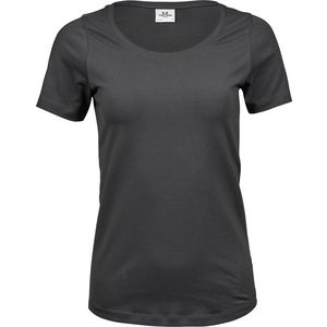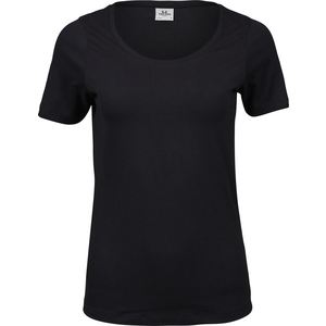 Vypasovaný střih, hluboký kulatý výstřih s elastanem, dvojité švy, "full feeder" elastan pro extra měkký povrch