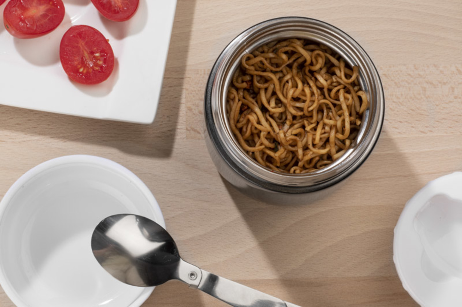 Termická nádoba DINA kombinuje funkci termosky a nádoby na potraviny. Malý kontejner můžeme vzít s sebou všude a užít si teplý oběd v práci nebo ve škole. Pro větší pohodlí je do víčka umístěna skládací lžíce z nerezové oceli. Díky vakuové izolaci se teplota udržuje až 8 hodin. Vnitřek kontejneru je vyroben z vysoce kvalitní nerezové oceli.