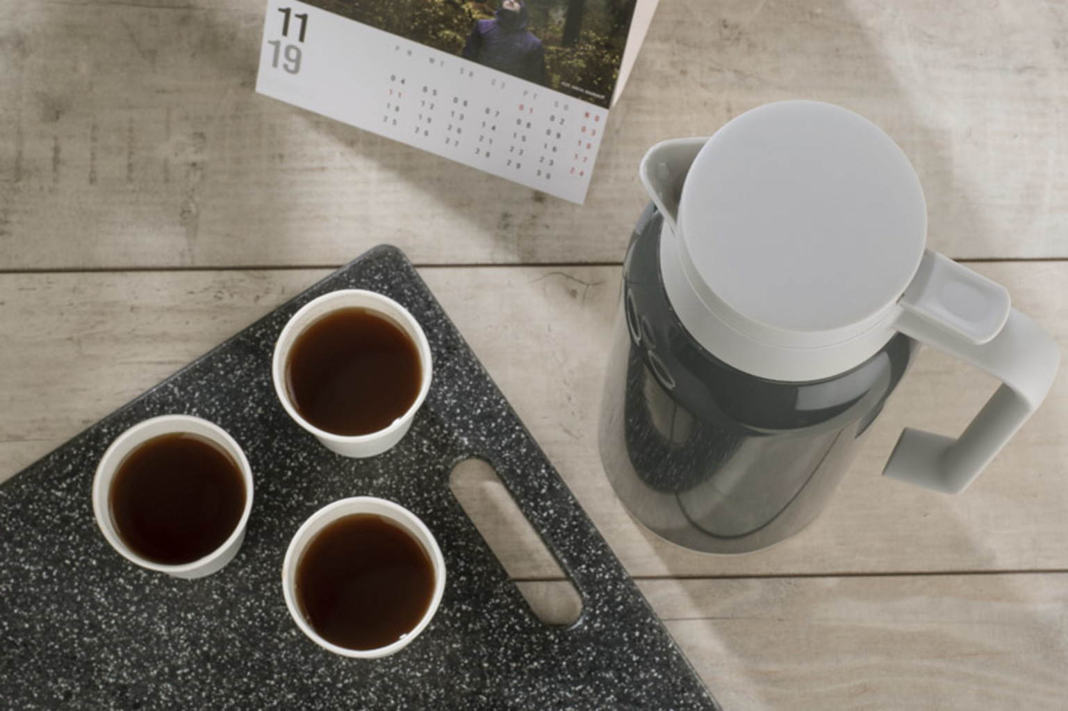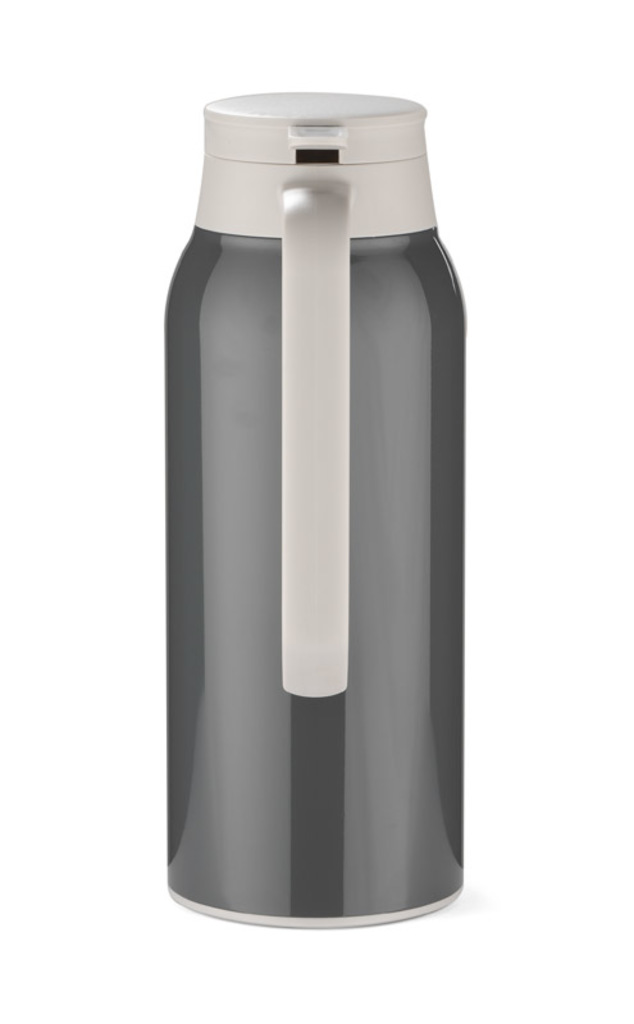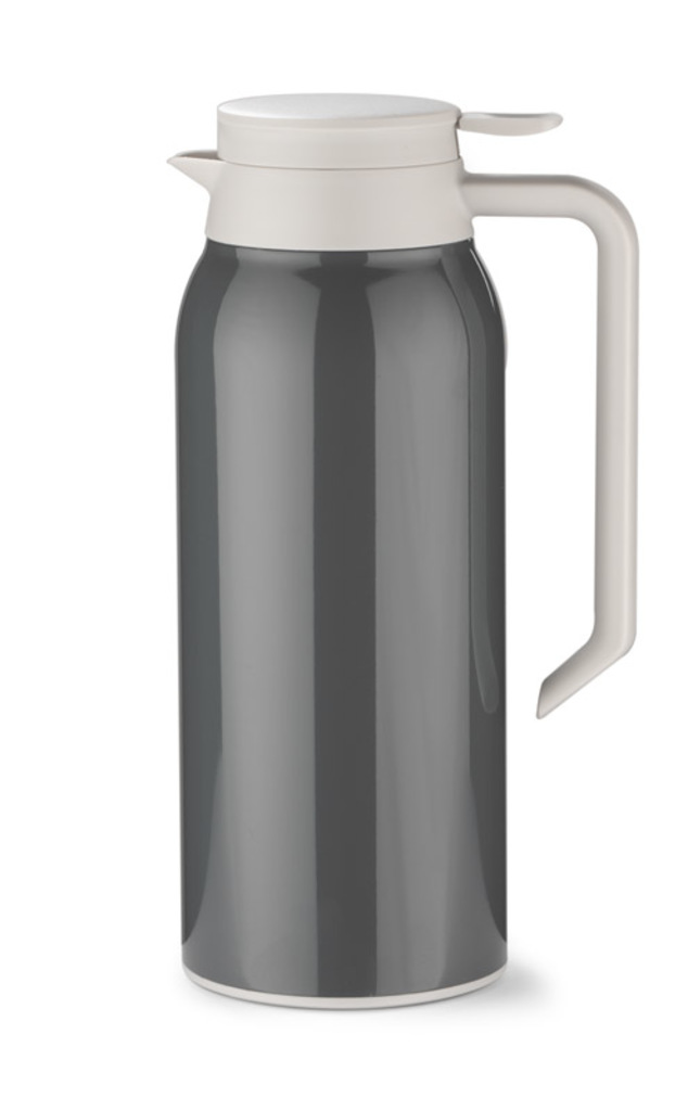 Termo džbánek POTI o objemu 1300 ml je praktickým dárkem v modních šedých odstínech. Vyroben z oceli. Vnitřek hrnku je výroben z nerez oceli zvýšených standardů. Má komfortní úchyt a tlačítko k nalíváni nápojů. Udržuje teplotu až 13 hod.