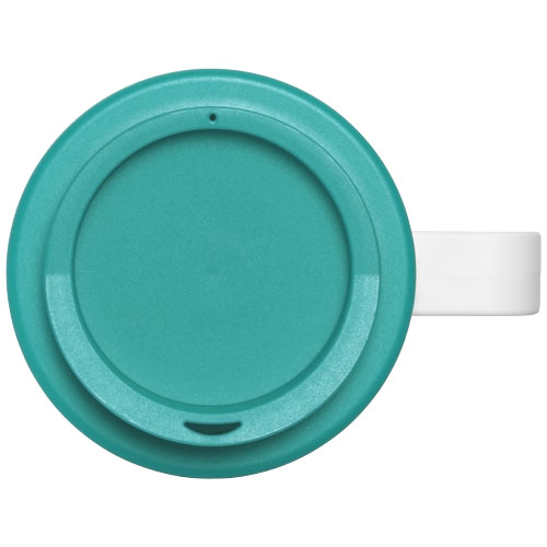 Izolovaný hrnek s nasazovacím víkem proti rozlití s dvojitou stěnou a integrovanou rukojetí. Vnější vrstva hrnku je vyrobena z recyklovaného plastu. Hrnek se vyznačuje plněbarevným designem přizpůsobeným výrobku, díky kterému je odolný a má dlouhou životnost. EN12875-1 kompatibilní; vhodný do myčky na nádobí a mikrovlnné trouby. Objem je 350 ml. Míchejte a spojujte barvy a vytvořte si tak svůj ideální hrnek. Pro další možnosti barev se obraťte na zákaznický servis. Vyrobeno v Spojeném království. Dodáván v bílé dárkové krabičce. Neobsahuje BPA.