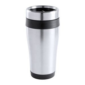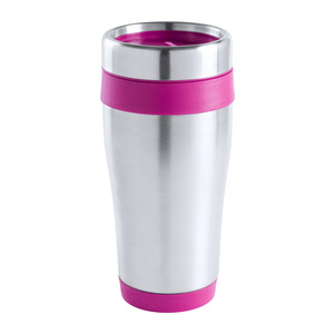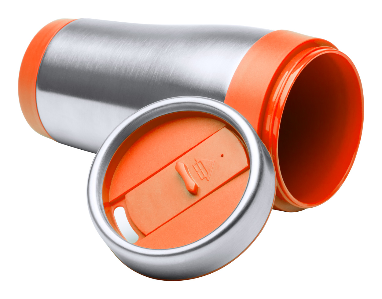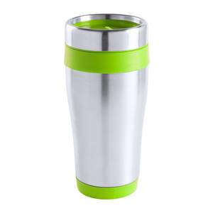 Nerezový termo hrnek s dvojitými stěnami a barevnými plastovými částmi, v dárkové krabičce, 450 ml.