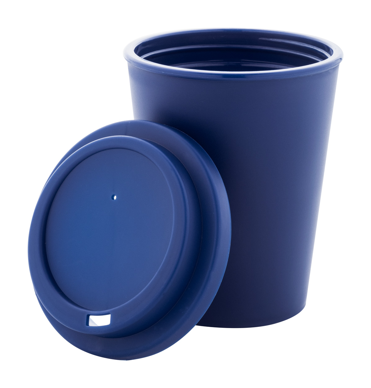 Dvoustěnný termo hrnek izolovaný PP plastem s víčkem na pití. 300 ml.