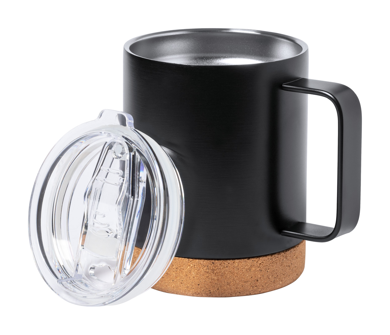 Dvoustěnný nerezový termohrnek s víčkem na pití a dnem z přírodního korku, 330 ml. V kraftové papírové krabici.