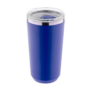 Dvoustěnný PP plastem pokrytý nerezový termo hrnek s víčkem na pití. 500 ml.