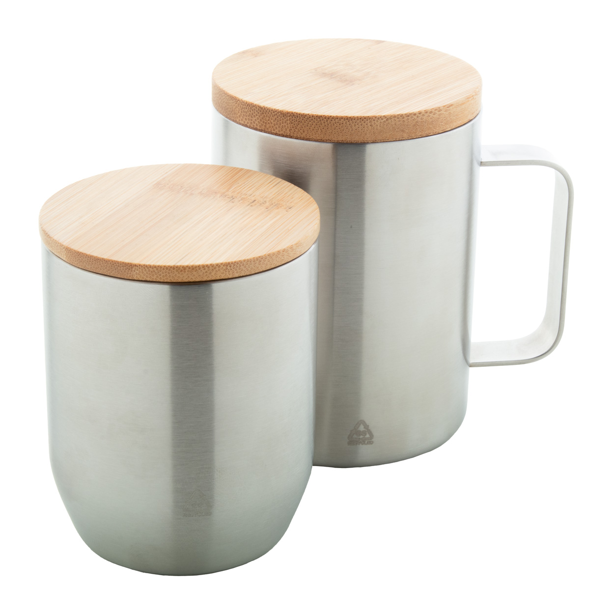 Dvoustěnný termo hrnek z recyklované nerezové oceli s bambusovým víčkem, 350 ml.