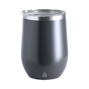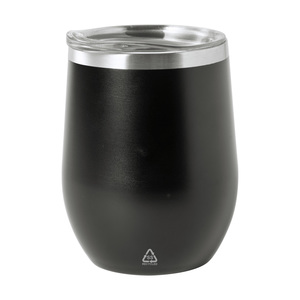 Dvoustěnný termo hrnek z recyklované nerezové oceli s plastovým víčkem na pití. 350 ml.