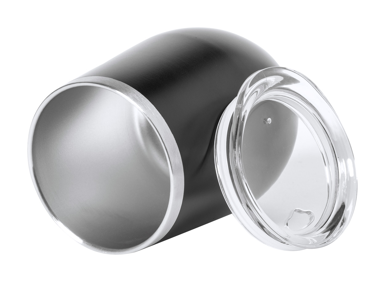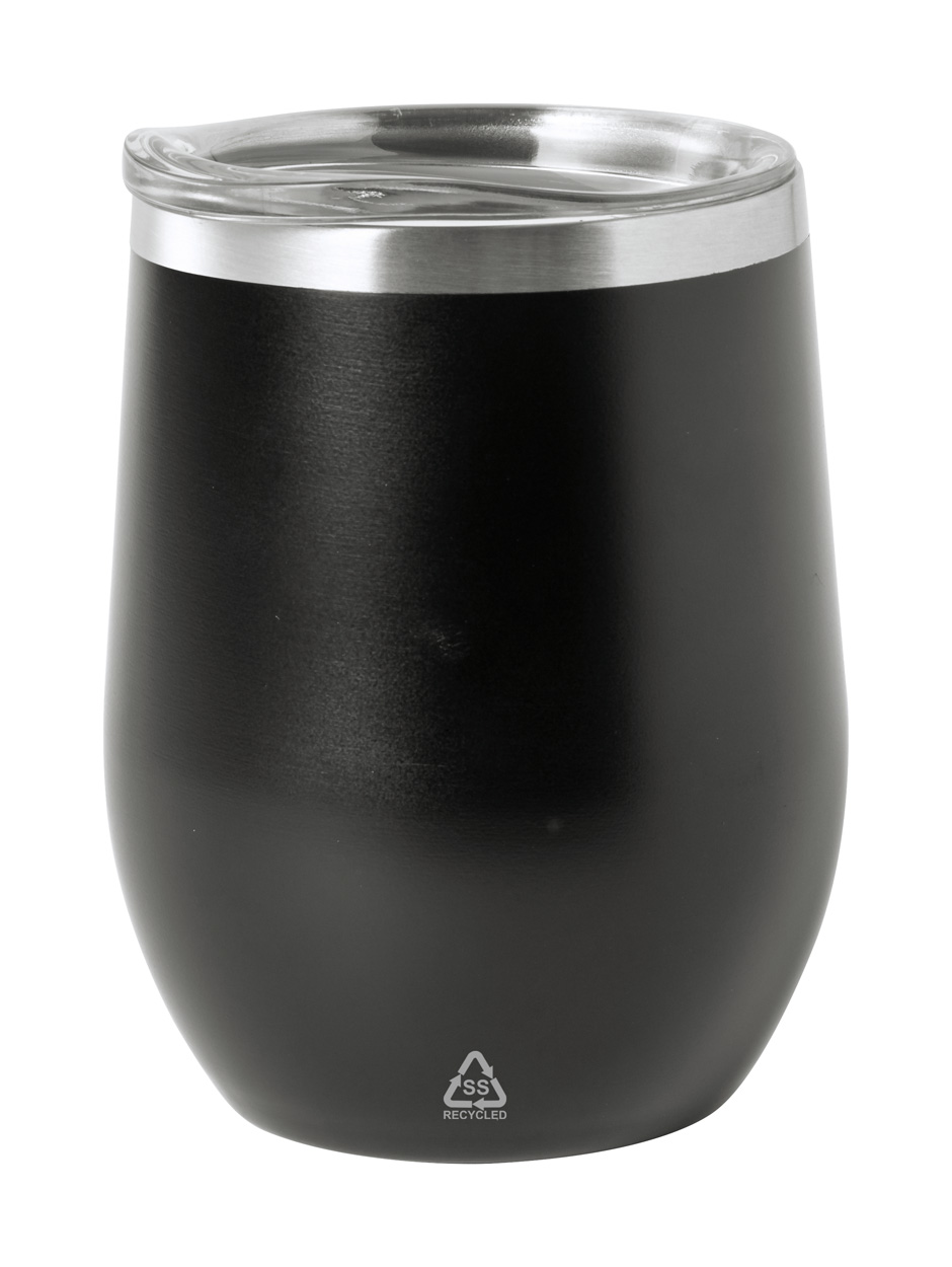 Dvoustěnný termo hrnek z recyklované nerezové oceli s plastovým víčkem na pití. 350 ml.