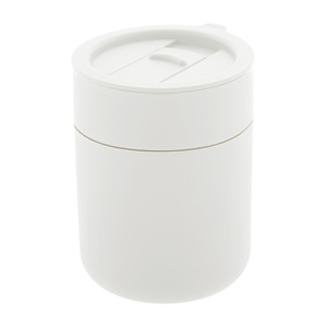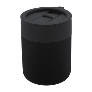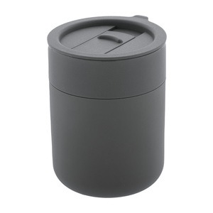 Silikonem potažený keramický cestovní kelímek s PP plastovým odkapávacím víčkem. 300 ml.