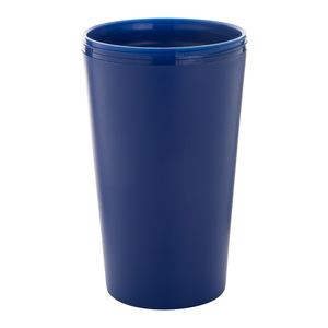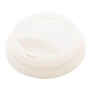 Dvoustěnný plastový termo hrnek na zakázku s víčkem na pití a se silikonovým úchopem, 400 ml. Min. mn. 50 ks.