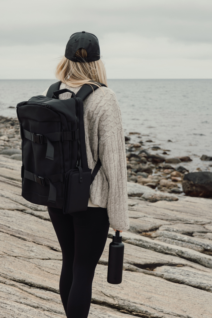 Stylová dvoustěnná vakuová láhev je vyrobená z RCS certifikované recyklované nerezové oceli. Je navržena s minimalistickým PU držadlem a černými detaily. Nápoje udrží studené až 12 hodin a teplé až 6 hodin. Není vhodná do myčky ani do mikrovlnné trouby, pouze ruční mytí. Certifikováno RCS (Recycled Claim Standard), certifikace RCS zaručuje, že celý dodavatelský řetězec recyklovaných materiálů je certifikován. Celkový obsah recyklovaného materiálu je založen na celkové hmotnosti výrobku. Tento produkt obsahuje 80 % RCS certifikované recyklované nerezové oceli.