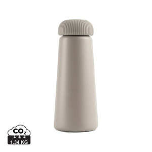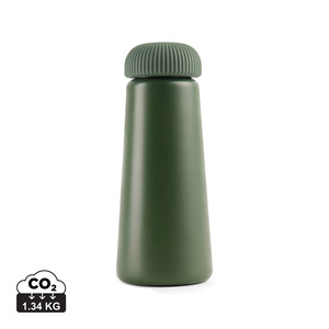 Důmyslně promyšlená lahev s moderním konickým tvarem a snadno ovladatelným uzávěrem. Skvěle kombinuje formu a funkci. Dvoustěnná konstrukce z nerezavějící oceli uchová nápoje až 6h horké a až 15h studené. Vyrobená z RCS recyklovaných materiálů. RCS (Recycled Claim Standard) je globální standard, který umožňuje ověřit použití recyklovaného materiálu v produktu napříč celým dodavatelským řetězcem. Podíl použitého recyklovaného materiálu vzhledem k celkové váze produktu: 75 %. Objem: 450 ml. Baleno v FSC kraftové dárkové krabičce.