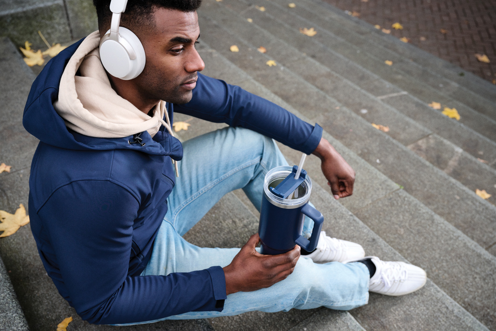 Termohrnek o objemu 1200 ml disponuje pohodlným držadlem a vejde se do většiny držáků na nápoje. Vnější strana je vyrobena z odolné recyklované nerezové oceli a je dvoustěnně vakuově izolovaná, díky čemuž jsou nápoje v ideální teplotě. Je vybaven víčkem odolným proti vylití nebo použití přiloženého brčka z recyklované oceli se silikonovou špičkou. Má certifikaci RCS, 29 % recyklovaného obsahu a neobsahuje BPA. Doporučujeme mýt ručně.