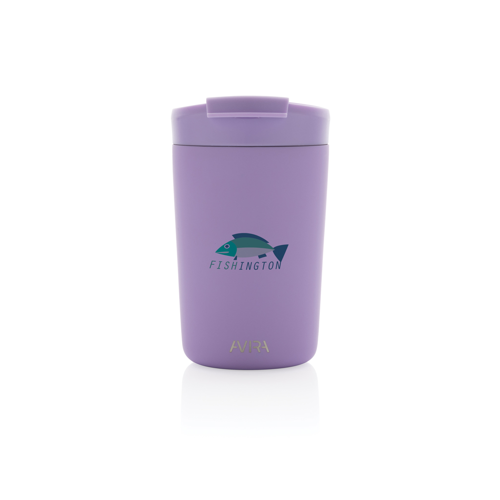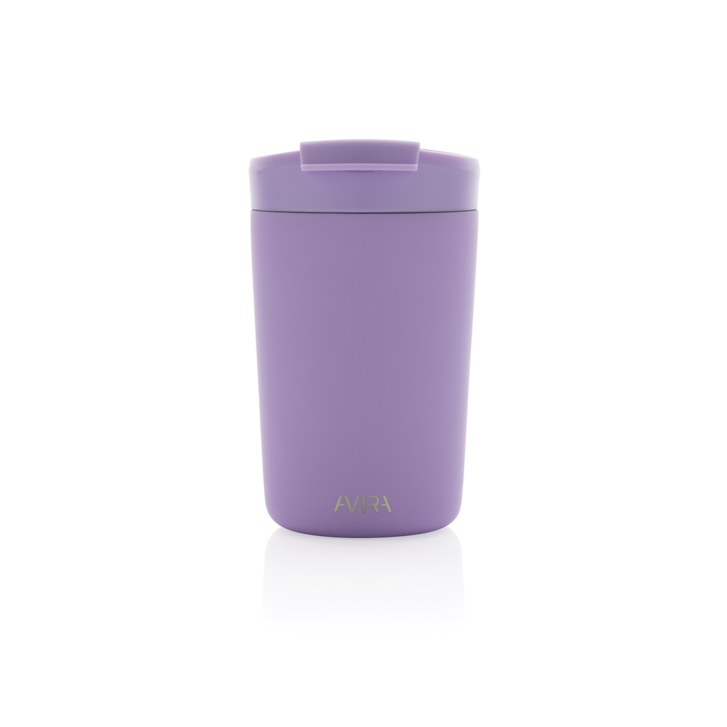 Termohrnek Avira Alya je navržená pro vaši každodenní dávku kávy nebo čaje. Dvojitá stěna z nerezavějící oceli uchová nápoje až 6 hodin horké a až 8 hodin studené. Praktická protiskluzová spodní část. Vyrobeno z RCS recyklované oceli a recyklovaného PP plastu. RCS (Recycled Claim Standard) je globální standard, který umožňuje ověřit použití recyklovaného materiálu v produktu napříč celým dodavatelským řetězcem. Celkový podíl recyklátu dle váhy produktu: 94 %. Objem: 300 ml. Bez BPA. Baleno v FSC® kraftové dárkové krabičce, kterou lze po vybalení složit a využít jako držák na telefon nebo pera nebo jako květináč.