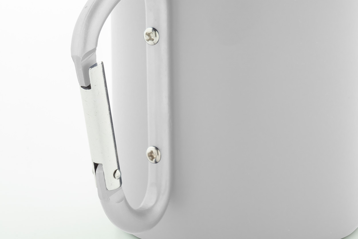 Dvoustěnný termo hrnek z recyklované nerezové oceli s karabinou z recyklovaného hliníku v odpovídající barvě. 300 ml. V kraftové papírové krabici.