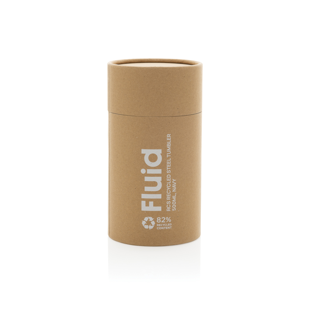 Tento 500ml termohrnek má výrazný dvoubarevný stylový design. Dvoustěnná vakuová izolace z recyklované nerezové oceli udrží nápoje chlazené až 15 hodin nebo teplé až 5 hodin. Hrnek Fluid se hodí pro většinu standardních držáků nápojů do auta. Vyroben z recyklovaných materiálů certifikovaných podle RCS (Recycled Claim Standard), což zajišťuje kompletně certifikovaný dodavatelský řetězec recyklovaných materiálů. Recyklovaný obsah dle celkové váhy produktu: 81 %. Bez BPA. Zahrnuje dárkové balení z kraftového papíru s certifikací FSC®.