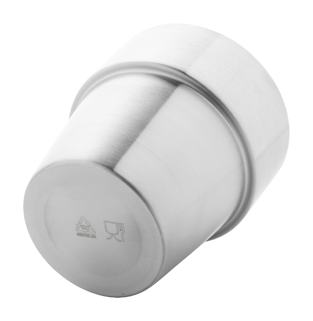 Dvoustěnný termohrnek z recyklované nerezové oceli o objemu 250 ml. Stohovatelný.