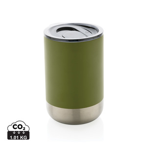 Moderní termohrnek s víčkem se zasunovacím systémem pro snadné pití. Ideální na cesty do práce nebo dopřávání si oblíbeného nápoje v práci. Dvoustěnná vakuová izolace uchová nápoj horký po dobu až 3h a studený až 6h. Vyrobeno z RCS recyklované nerezavějící oceli. RCS (Recycled Claim Standard) je globální standard, který umožňuje ověřit použití recyklovaného materiálu v produktu napříč celým dodavatelským řetězcem. Podíl použitého recyklovaného materiálu vzhledem k celkové váze produktu: 76 %. Bez BPA. Objem: 360 ml. Baleno v FSC kraftové krabičce.
