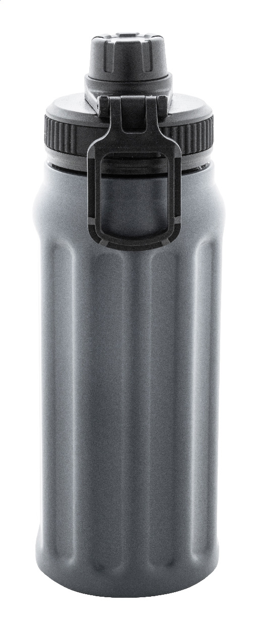 Dvoustěnná termoska z recyklované nerezové oceli s vertikálními drážkami. S víčkem z polypropylenu a s integrovaným držadlem. 540 ml.