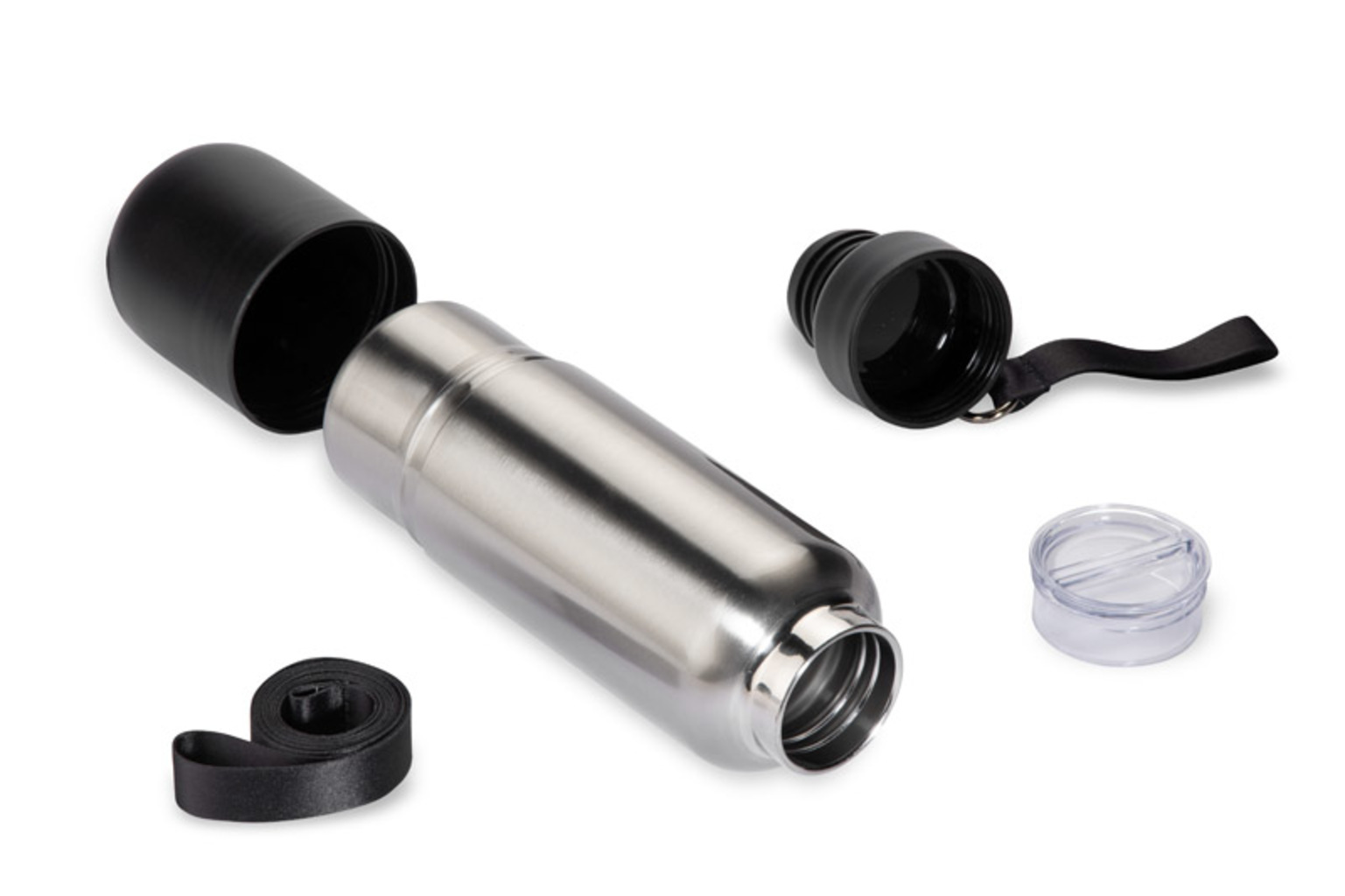 Termální láhev RON je ideální volbou pro aktivní lidi, kteří si cení pohodlí i funkčnosti. Bude ideální pro trénink i spontánní výlety. Láhev je vybavena karabinou a dvěma šňůrkami: krátkou a dlouhou šňůrkou na střídání, což umožňuje pohodlné nošení a snadné přizpůsobení různým situacím. Jednoduše ji můžete nosit na zápěstí při běhu nebo si ji zavěsit na záda při pěší turistice. RON má navíc uzávěr s praktickou přihrádkou na drobnosti (například tablety nebo doplňky stravy). Unikátní plastová základna, která se po odšroubování stane dalším pohárkem, eliminuje riziko popálení jazyka a umožňuje pohodlnější pití.