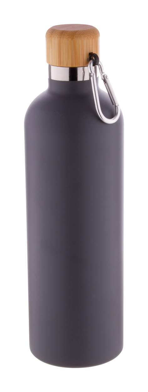 Dvoustěnná termoska z nerez oceli s bambusovým víčkem a karabinou, 500 ml.