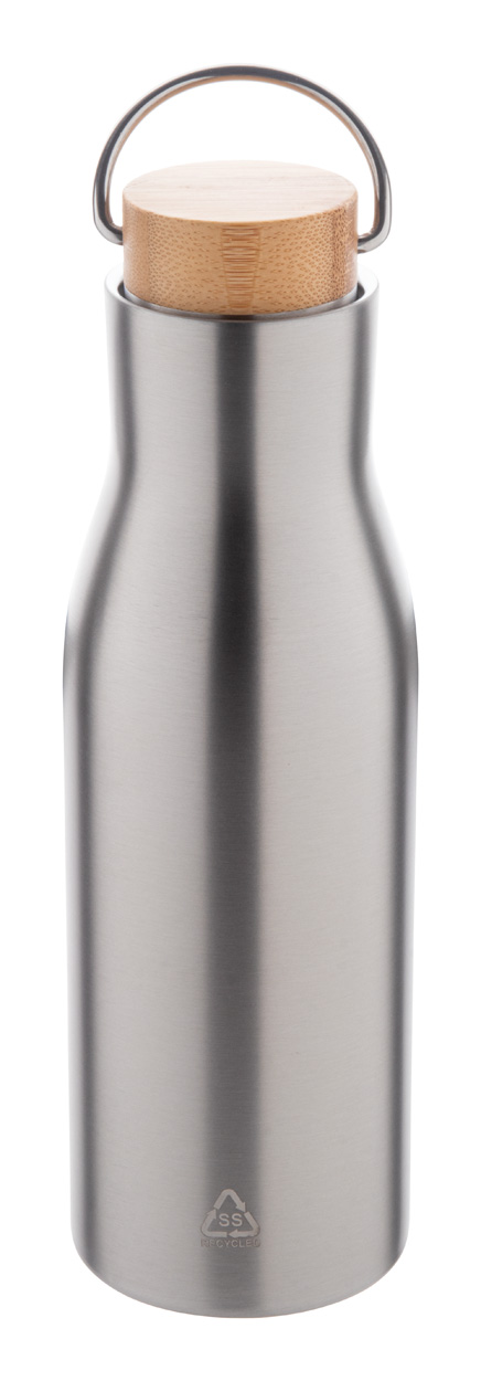 Dvoustěnná termoska z recyklované nerezové oceli s víčkem na přenášení z bambusu, 500 ml.