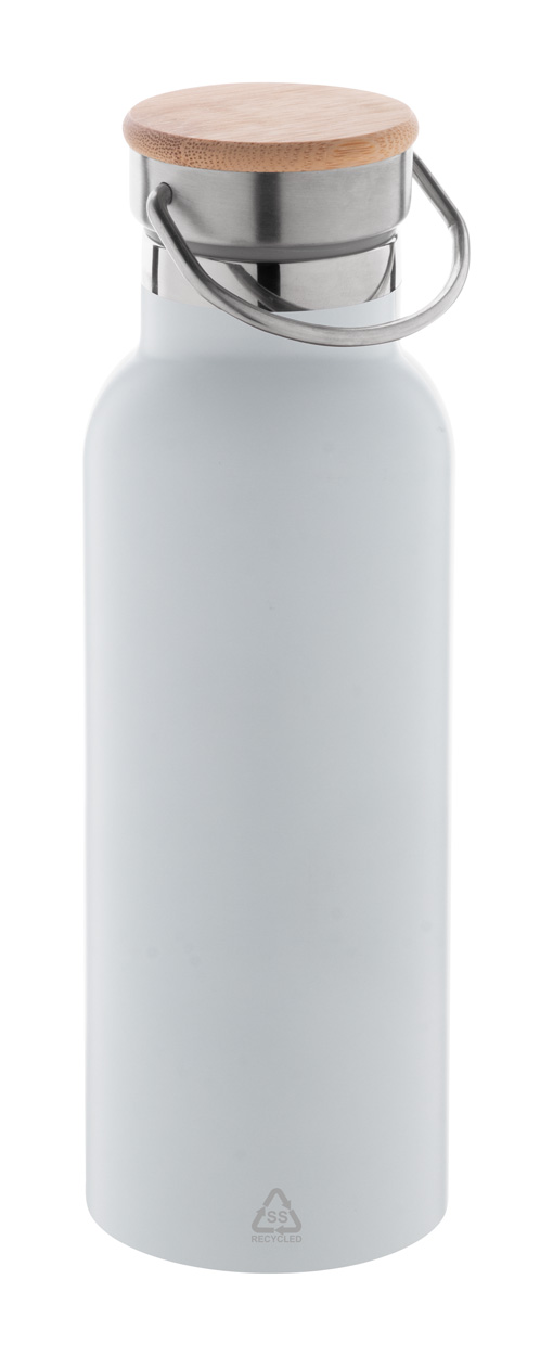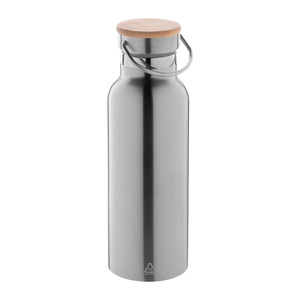Dvoustěnná vakuově izolovaná termoska z recyklované nerezové oceli s bambusovým víkem. 500 ml.