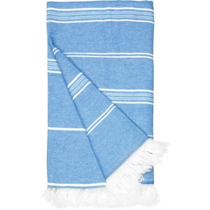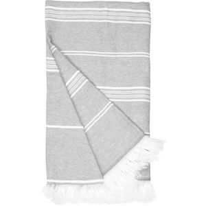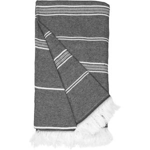 Pruhovaný design, zkroucené třásně, lehké a rychleschnoucí, rozměry: 100x180cm, pratelné na 30°, nelze sušit v sušičce, dodáváno srolované a ovázané recyklovanou bavlněnou šňůrkou