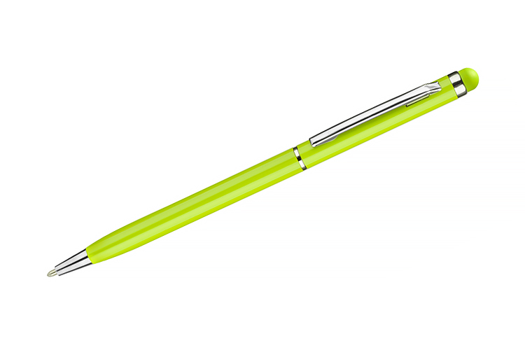Nová, vylepšená verze známého modelu. Tenké kovové kuličkové pero s barevným hrotem pro dotykové obrazovky. Modrá náplň.