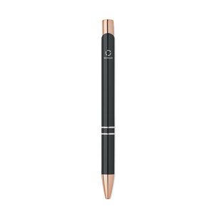 Tlačítková propiska z recyklovaného hliníku. Modrý inkoust.