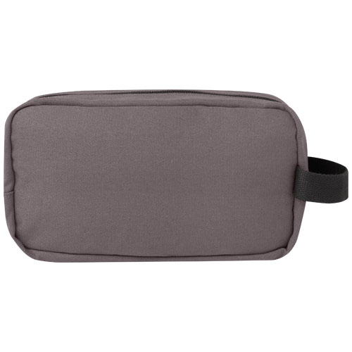 Toaletní taška vyrobená z GRS certifikovaného recyklovaného plátna a GRS certifikované RPET podšívky. Nabízí přední kapsu a jednu hlavní přihrádku na zip s organizačními kapsami. To vše s pohodlným popruhem na nošení. Díky dekorativní kovové desce vynikne logo s jemným a matným povrchem. Kapacita: 3,5 litrů.