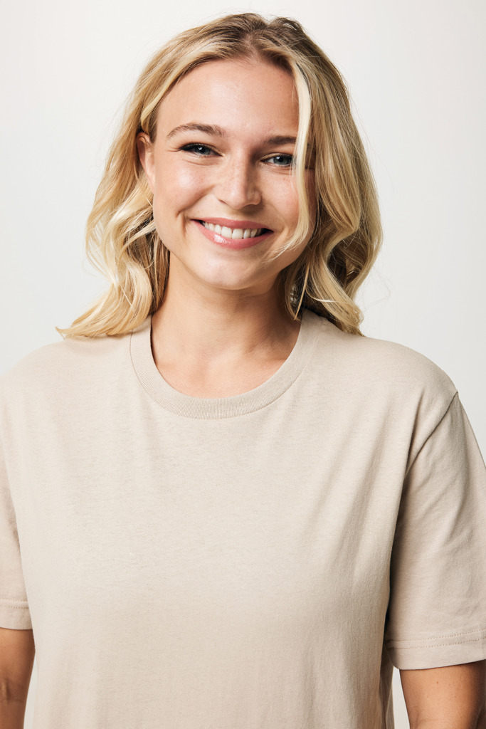 Unisex boxy fit tričko vyrobené ze 100 % bavlny (50 % recyklované, 50 % organické) s gramáží 180g/m². Výstřih s 1x1 žebrováným lemem, pohodlný širší střih a mírně kratší délka. Obsah recyklovaných a organických materiálů je garantován díky využití technologie AWARE™, která kombinuje možnost skenování materiálu a technologii blockchain. Každý produkt Iqoniq vlastní unikátní štítek s QR kódem, který odkazuje na příslušný digitální pas produktu. 2 % z výtěžku každého prodaného kusu je darováno na Water.org. Certifikováno OEKO-TEX® STANDARD 100 2303045 Centexbel. Povaha recyklovaného materiálu může mít vliv na barevnost nebo výskyt nečistot v textilu.