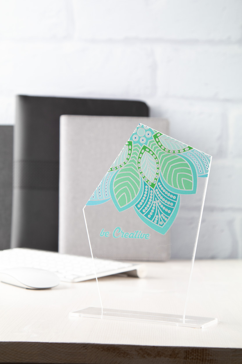 Trofej na zakázku z akrylu s jedinečným tvarem a plnobarevnou grafikou. Cena zahrnuje UV LED tisk, nezahrnuje tiskovou přípravu. Min. mn.: 50 ks. Dodáváno rozložené.