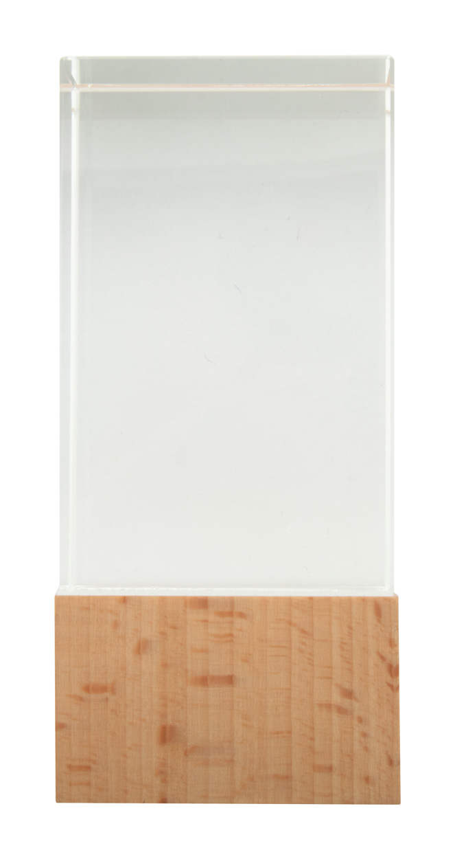 Skleněná trofej s podnoží z bukového dřeva. V kraftové dárkové krabičce.