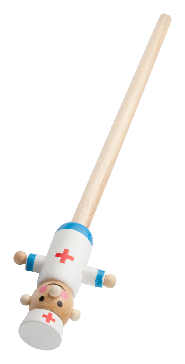 Dřevěná tužka s figurkou lékaře na vršku.