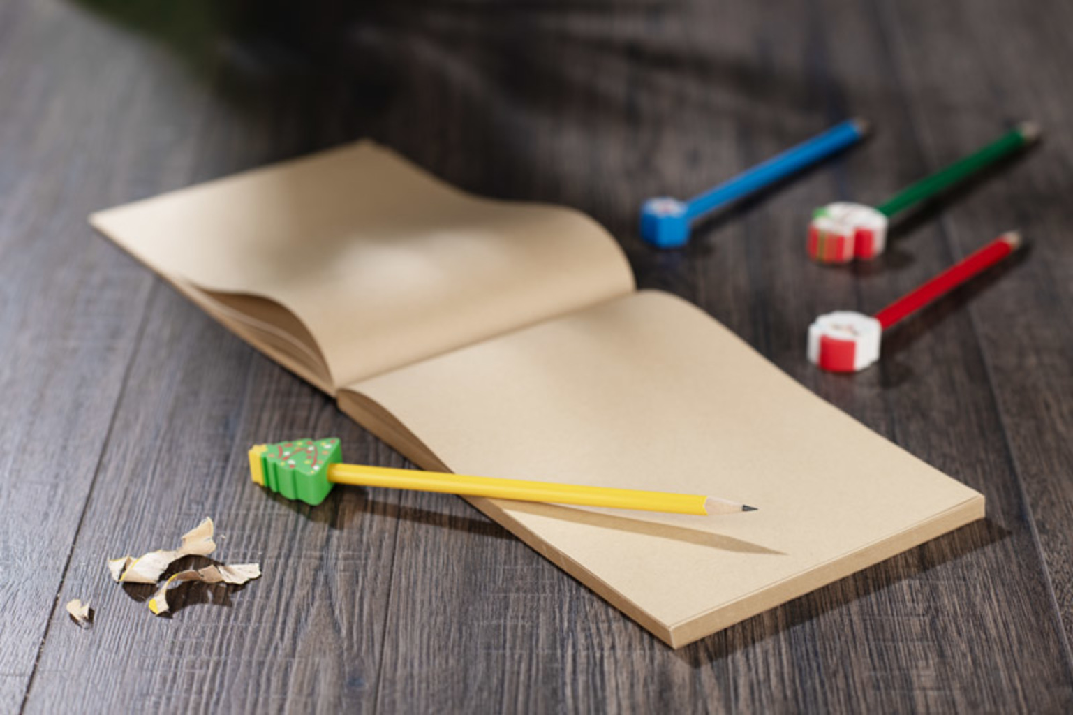 Tužka CHRISTMAS je sváteční dárek ve žluté barvě, zakončený gumou ve tvaru vánočního stromku. Veselý barevný akcent jí dodává sezónní nádech a upoutá pozornost nejmenších. Ideální jako doplněk k mikulášským sadám, adventním kalendářům nebo jako malá reklamní pomůcka během svátečního období.