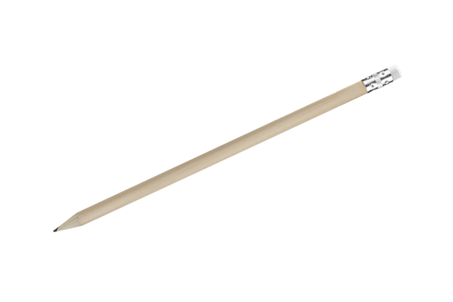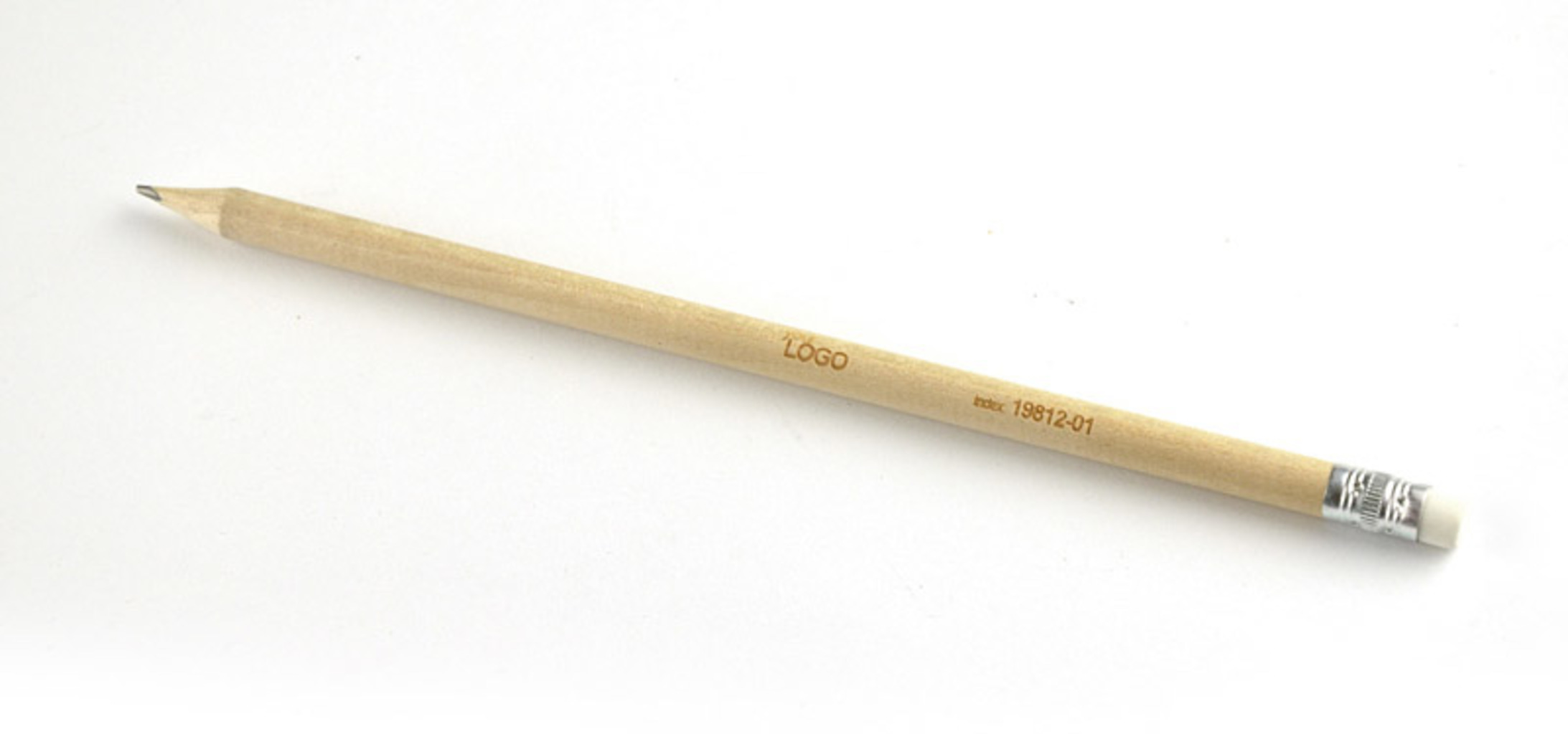 Klasická dřevěná tužka s gumou. Tvrdost HB. Naostřená tužka. Logo bude vyryto nebo vytištěno na povrchu tužky.