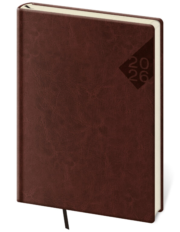 Formát diáře: 145 x 205 mm Rozsah diáře: 128 stran Kalendárium: týdenní + papír bloku chamois