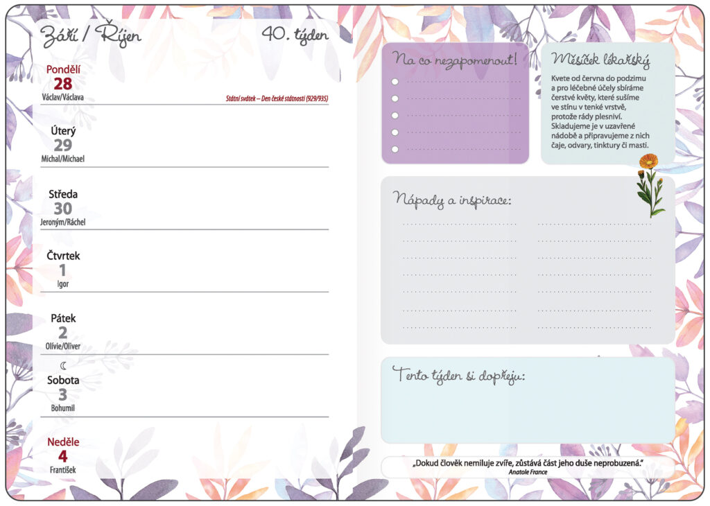 Týdenní diář B6 Bylinkový