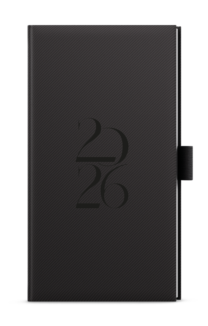 Týdenní kapesní diář z jemně strukturovaného materiálu s ražbou roku. Diář má navíc poutko na propisku.